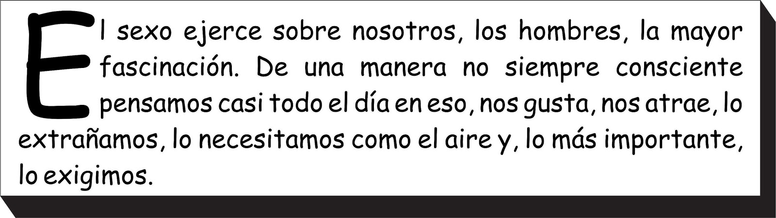 Estábamos observando la prueba viviente de la depravación masculina. La marca del peca do hecho realidad, desfilaba tranquila y descaradamente frente a nuestros ojos. No sólo no pudimos disimular nuestra sorpresa, sino que decidimos tomar partido y ser solidarios con la causa de los verdaderos machos.